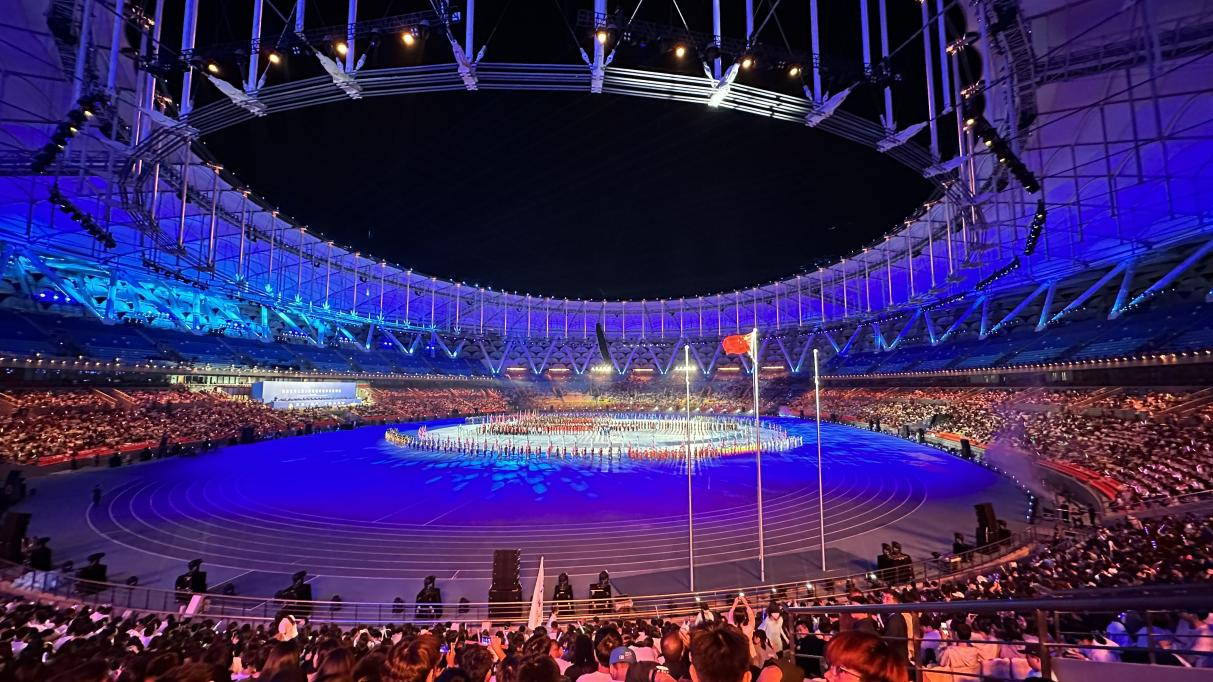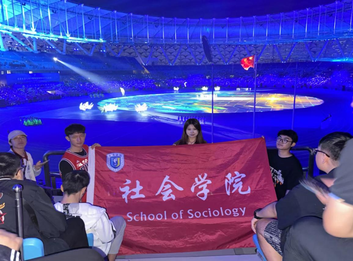 11月24日晚8时,第七届少数民族运动会开幕式在三亚市白鹭体育馆拉开帷幕。在其中,百余位社会学院学子在赵刘丽老师的带领下,在白鹭体育场共同见证了这激动人心的时刻。