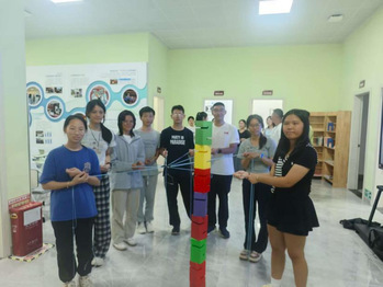 在竞争与合作并存的“叠金字塔”环节中,各小组需在不使用双手的前提下,仅凭一根绳子协作搭建金字塔。游戏不仅考验了同学们的耐心与智慧,更将团队协作精神体现得淋漓尽致。