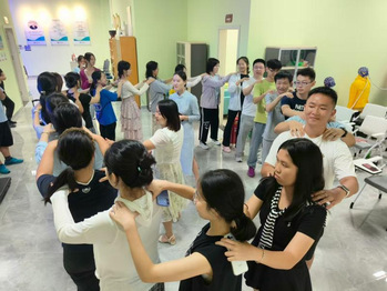 活动伊始,在轻快的音乐中,“热身操”环节迅速点燃了现场气氛。同学们在指导下学习“抓、捏、捶、拍”四个按摩动作,并相互服务,不仅放松了身心,更在欢声笑语中打破了初次见面的拘谨。