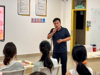 随后,李欣烨老师和赵越老师携手主持,带领新生们投入到精彩纷呈的互动环节中。在自我介绍接龙环节,老师首先示范,紧接着新生们以家乡特色、兴趣爱好等独特标签,打破了彼此间的陌生壁垒。从各地的方言特色到擅长的才艺技能,大家在欢声笑语中逐渐熟悉,原本略显拘谨的氛围被迅速打破,现场充满了青春的朝气与活力。