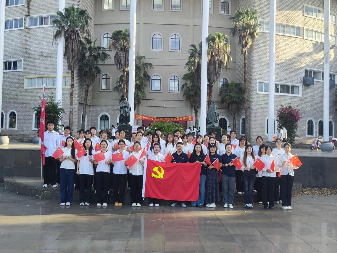 活动尾声,师生们将部分精美的书签作品悬挂展示,并在喷泉广场合影留念。小小的手作,不仅是一次艺术体验,更是一堂生动的爱国主义教育课。它让“家国”二字以一种可触、可感、可留存的方式,深深烙印在每位参与者的心中,激励着社会学院师生以更饱满的热情与创造力,投身于今后的学习与工作之中。