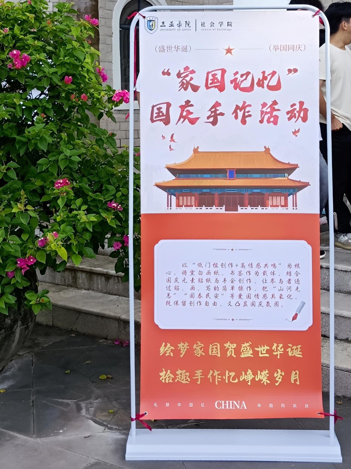 为庆祝中华人民共和国成立76周年,社会学院于书德楼门口精心组织了“拾趣手作忆峥嵘岁月,绘梦家国贺盛世华诞”主题手作活动。学院团委副书记蒋正喜、思想导师白晓梦、郭青荟、张语芯来到现场,与同学们一同通过亲手创作,将炽热的家国情怀具象化为一件件充满温度的作品。