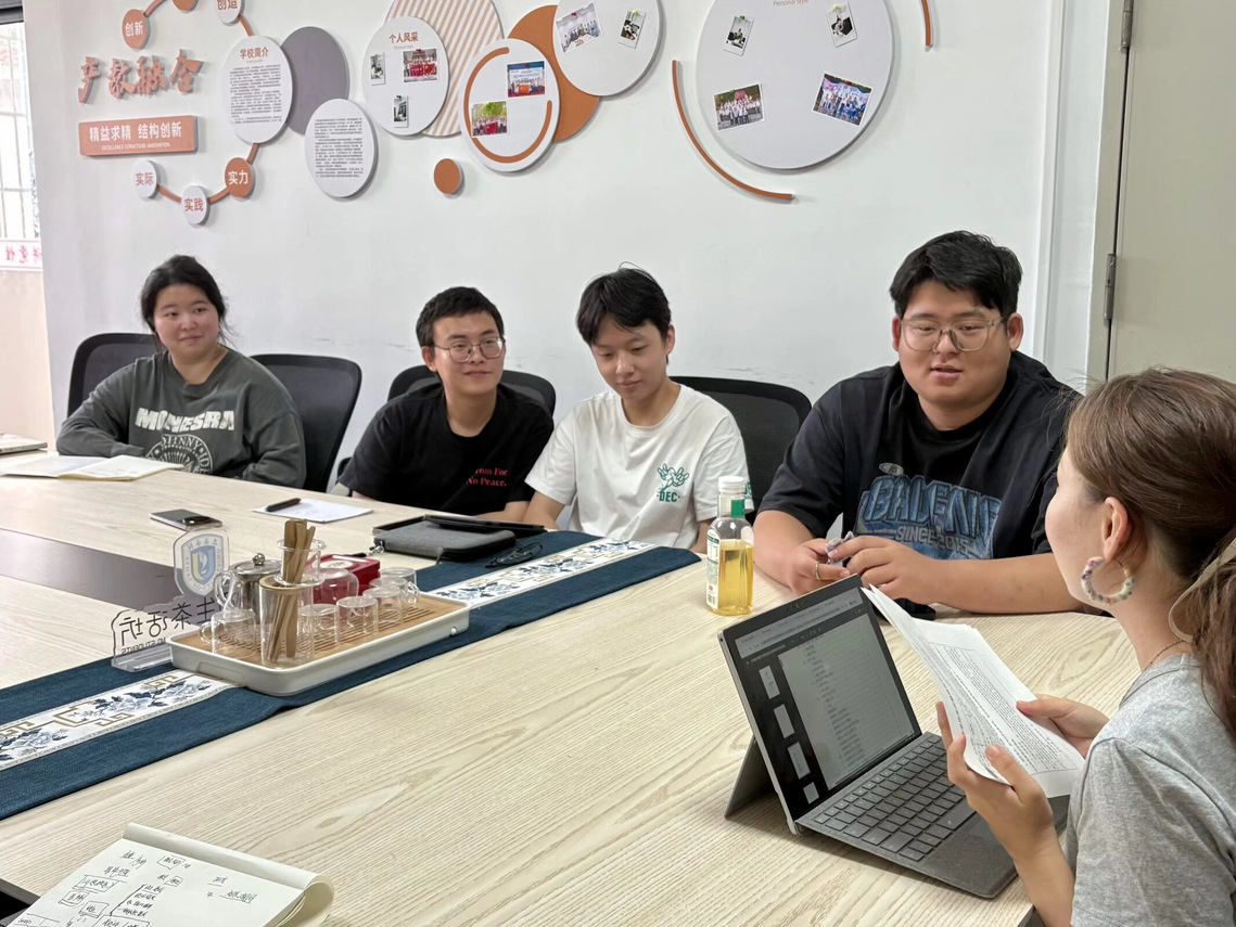 会议伊始,面对学生们踊跃提出的多项具有现实意义的研究意向,苏娜尔老师表示,选题应当“具体而深入”,建议学生结合地域特色或个人兴趣点,明确研究对象、地点及群体,避免选题过于宽泛,以增强研究的实证性与针对性。