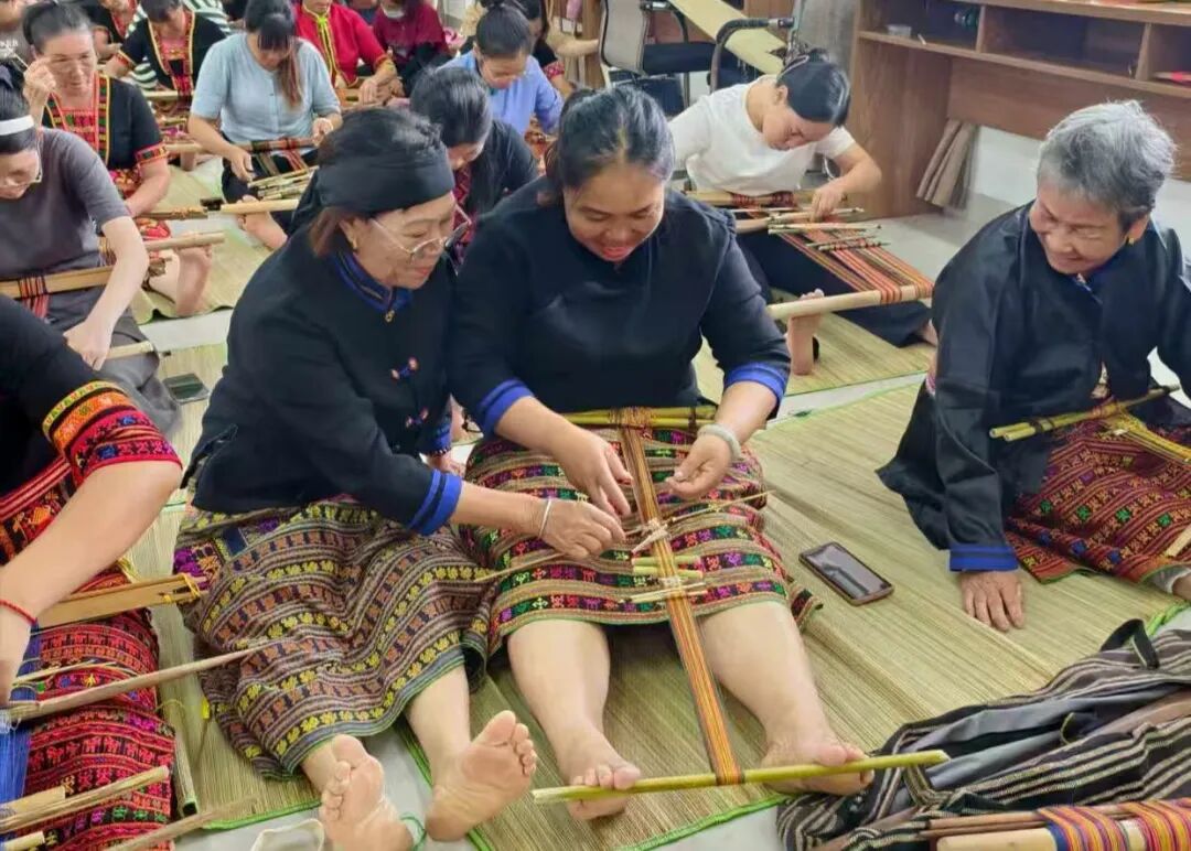(落笔大社区联合市公共文化中心开展“黎族传统纺染织绣技艺” 培训班)