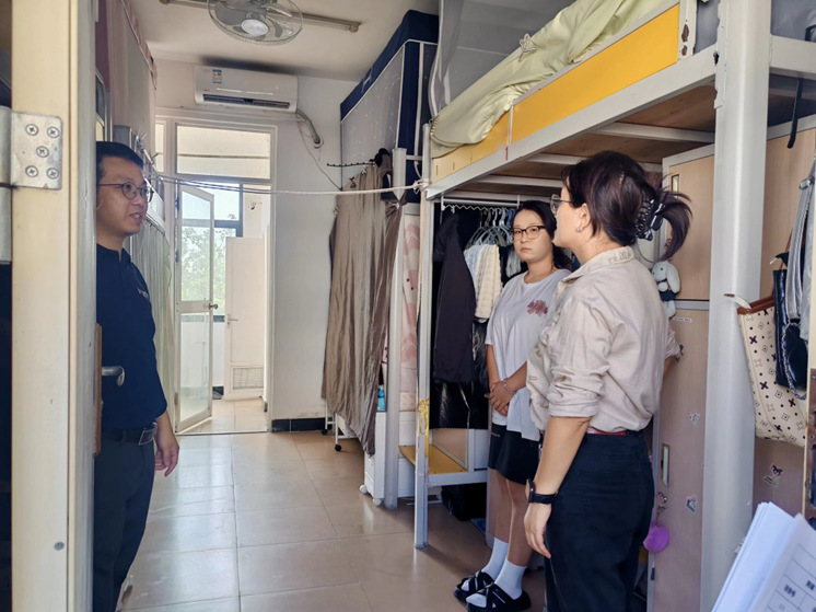走访过程中,傅萍书记与同学们亲切交流,细致询问每位同学的毕业规划。针对求职的同学,耐心了解他们的就业进展,鼓励大家放宽视野、主动出击,并叮嘱同学们在求职过程中要增强安全意识,维护自身合法权益。面对正在备战考研的学子,傅萍书记关切地询问他们的复习状态和心理压力,贴心提醒大家要劳逸结合、张弛有度,以饱满的精神和稳定的心态迎接挑战。