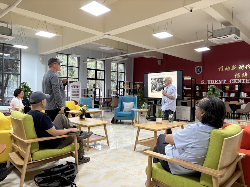 (外国语学院学术委员会主任朴玉明教授与普鲁姆教授针对塞缪尔·巴特勒的科幻作品定位及其人机关系思想展开交流)