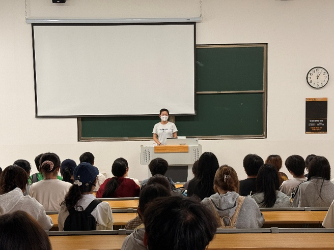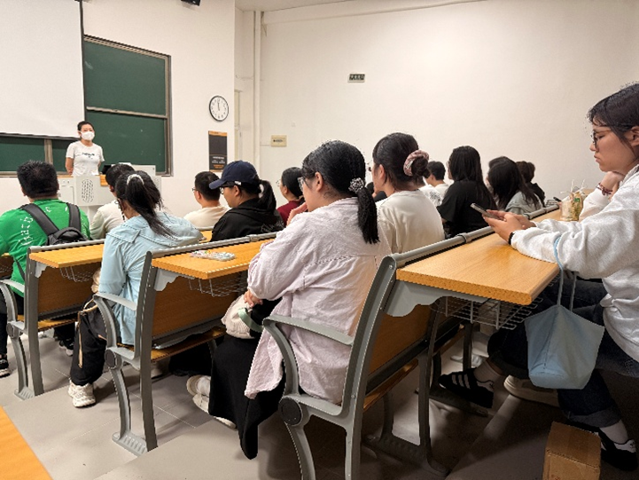 张语芯老师就宿舍生活管理作了说明,重点提到人脸识别打卡制度和用电安全规范。她表示,宿舍楼人脸打卡系统是校园安全管理的重要措施,每位同学须养成每日打卡习惯,共同维护宿舍区域安全。此外,她明确严禁在宿舍内使用违规电器,提醒同学们增强消防安全意识,营造安全、整洁、和谐的居住环境。在请假制度方面,张老师详细说明了正常请假流程与纪律要求,强调学生如有请假需求,须按规定提前向辅导员说明事由并提供相应证明,严禁无故旷课和事后补假。她希望同学们树立诚信意识,合理安排个人事务,共同维护教学秩序。