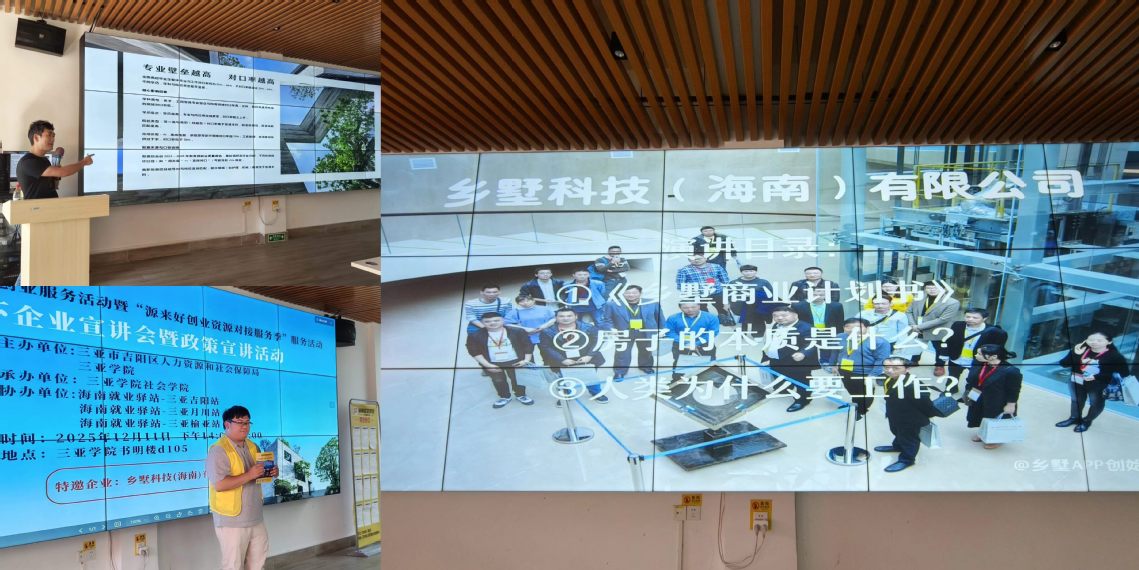 招聘会上,乡墅科技创始人刘新培详细介绍了企业专注海南乡村建设的核心业务布局,并针对社会学院学子精准释放多个招聘岗位。作为深耕海南本土的企业,乡墅科技秉持 “为农民工代建或合建标准乡墅” 的发展理念,推出标准化乡墅产品,当前亟需社会学专业人才加盟助力。