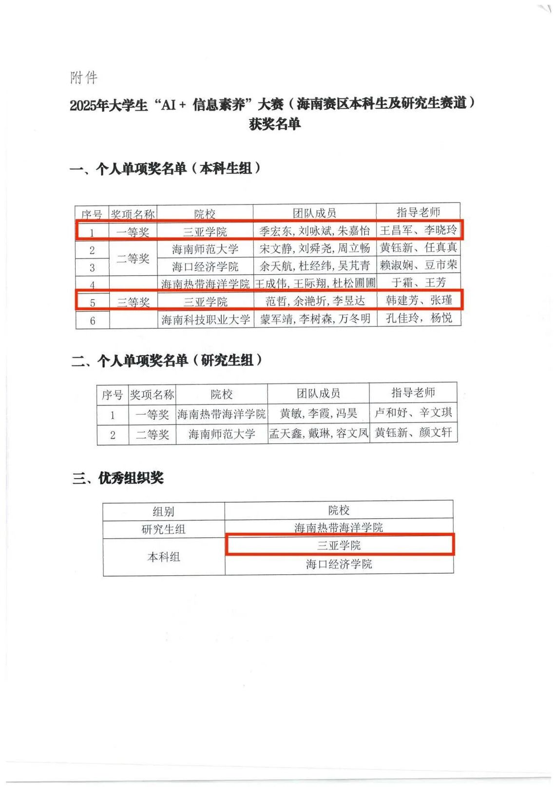 2025年11月20日,由海南省教育厅主办、海南省高等学校图书情报工作委员会承办的2025年大学生“AI+信息素养”大赛(海南赛区本科生及研究生赛道)圆满落幕。