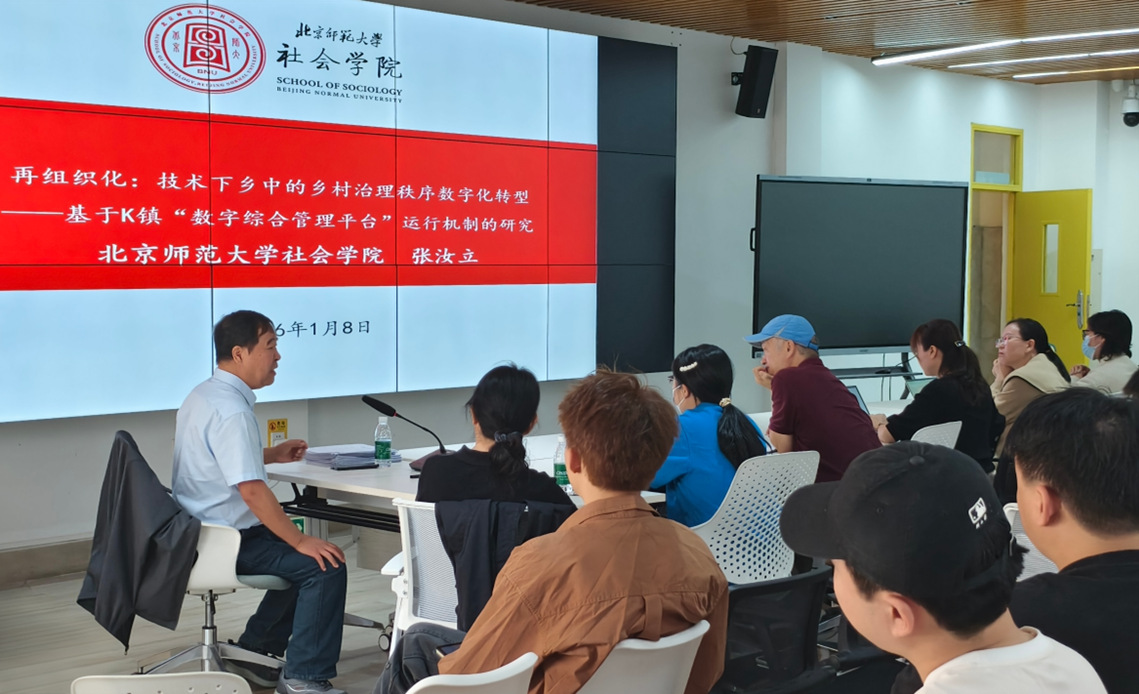 1月8日下午,社会学院特邀北京师范大学社会学院张汝立教授开展“乡村治理数字化转型”专题讲座。讲座由社会学院学术委员会副主任肖芒教授主持,社会学院教师、研究生和本科生听取讲座。