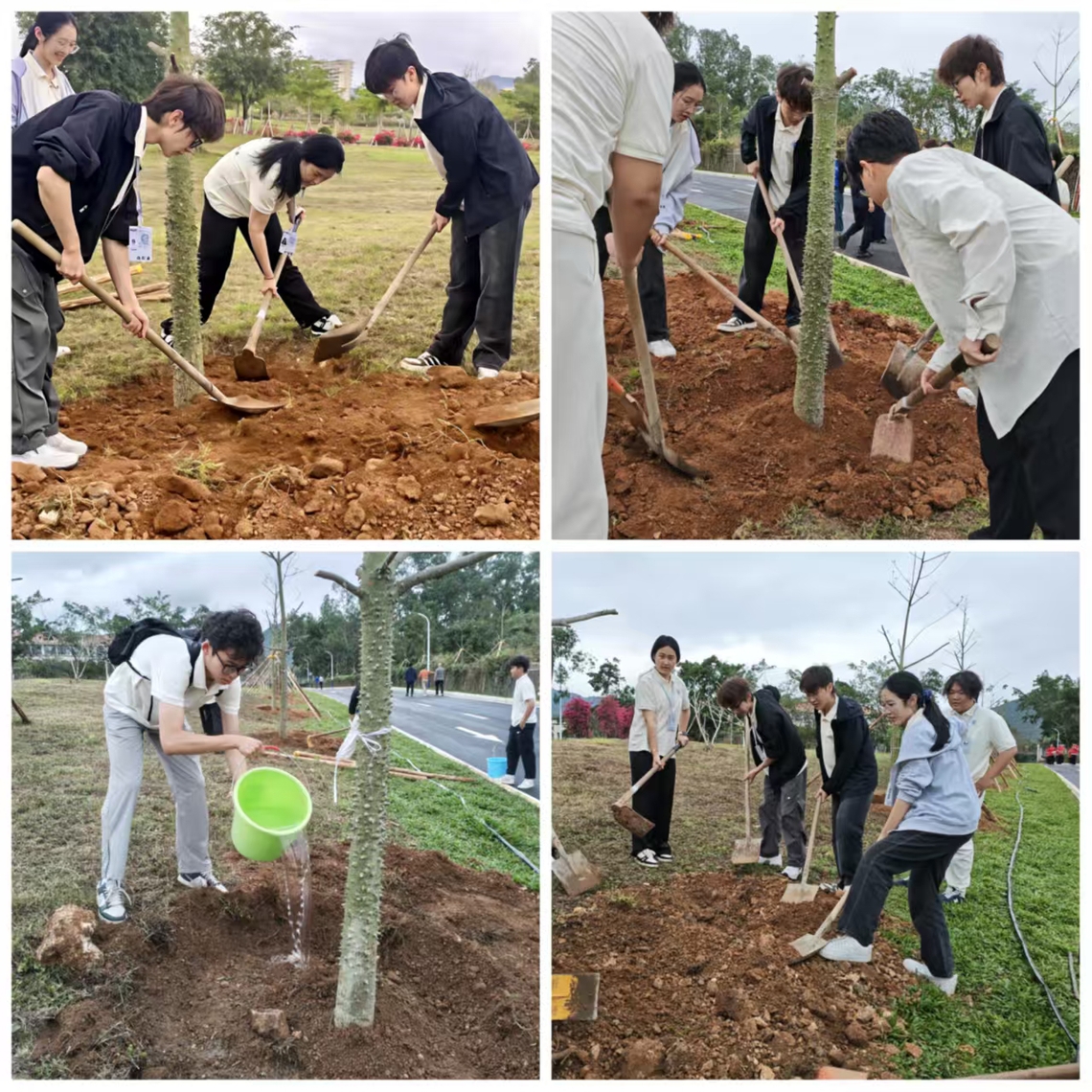 参与活动的团学干事纷纷表示,亲手栽种树苗的过程,既是与自然的亲密对话,更是对责任与担当的深刻体悟。种下一棵树苗,便是种下一份期许,期待它与我们一同在校园里茁壮成长,也激励我们以更昂扬的姿态扎根专业、服务社会,让青春在实干中绽放光彩。
