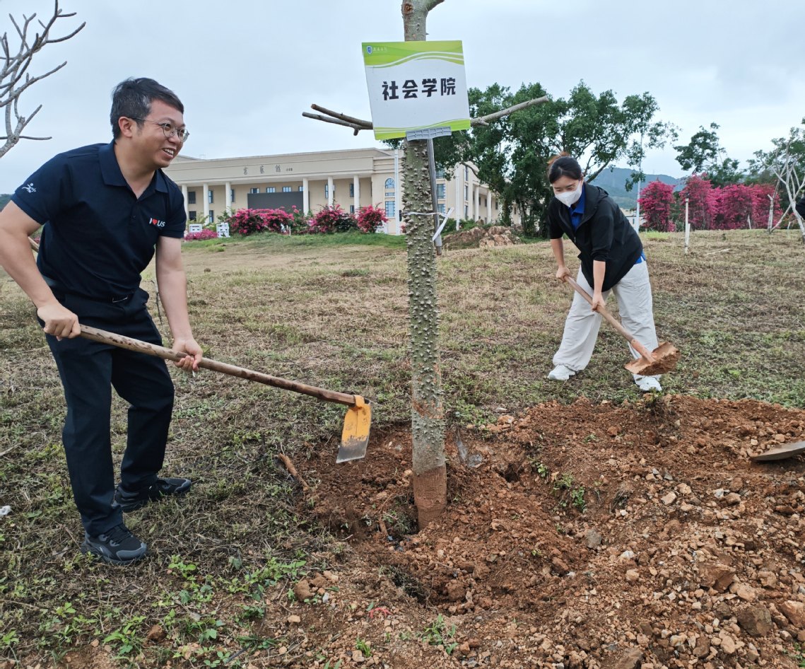 春风拂椰林,新绿满校园。3月12日,在第48个植树节到来之际,三亚学院“春日种新苗 一起‘浇’个朋友吧” 主题植树节志愿服务活动火热开展。社会学院积极响应学校号召,由党总支书记傅萍带队,学院团委副书记蒋正喜,思想导师白晓梦、郭青荟、许文东、张语芯及部分团学干事共同参与,师生们躬身培土浇水,以汗水播撒绿色希望,用行动践行生态文明理念,为美丽校园添新绿,为生态育人注入社科力量。