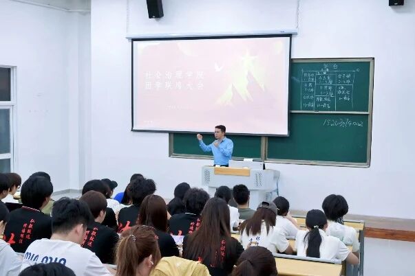 会议现场气氛热烈庄重。曹添老师热情欢迎全体团学骨干参会,详细介绍社会治理学院设立的背景与意义,表达对新团学组织建设的重视与期待。随后,蒋正喜老师具体介绍新团学组织结构,从学院发展全局出发,为新一届团学组织明确工作重点、指明工作方向。