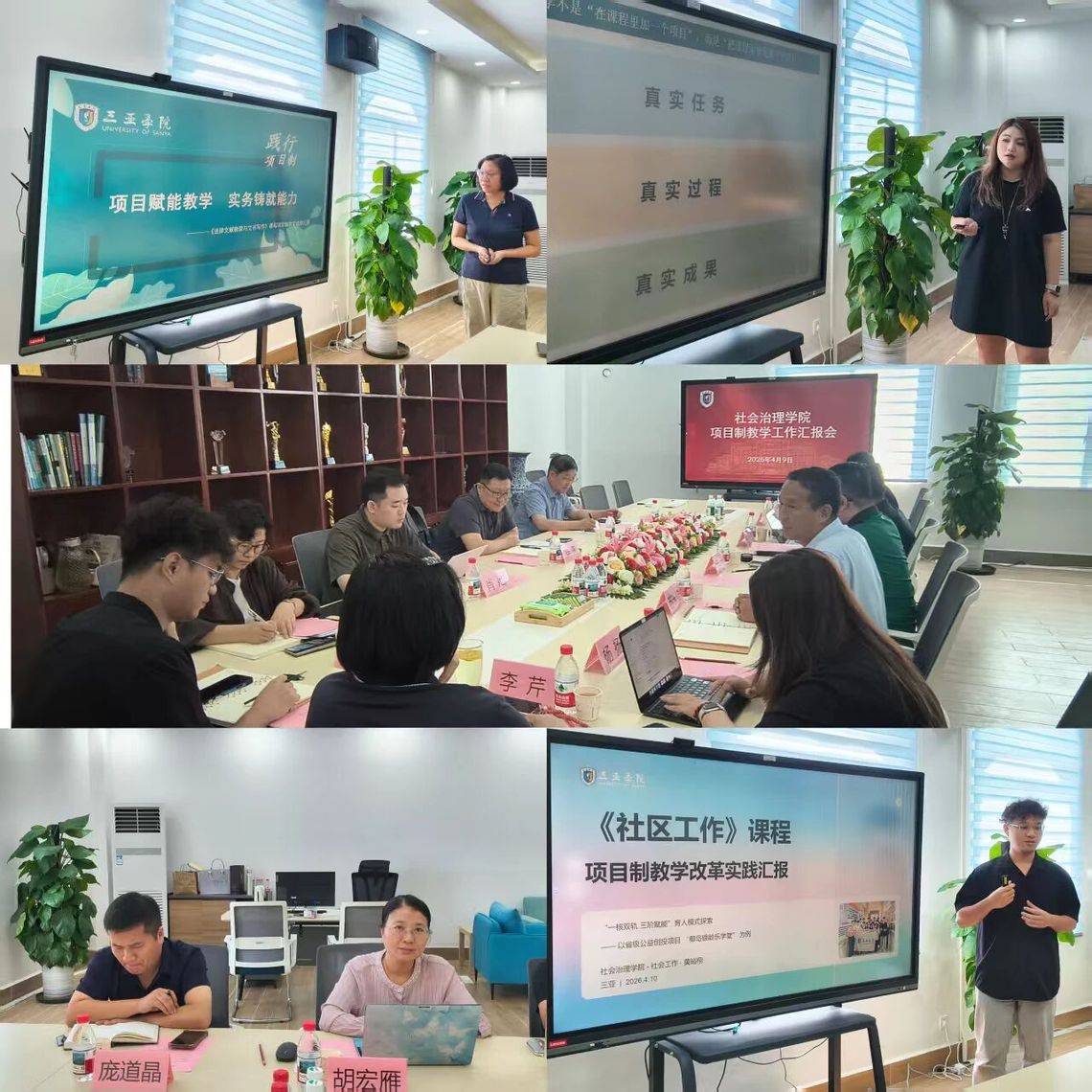 4月9日,三亚学院社会治理学院在学院会议室召开项目制教学研讨会。副校长柴勇,校长助理亓元,教务处、高教研究与质量评估中心等相关职能部门负责人,以及社会治理学院各系主任出席会议。会议由副院长苏米雅主持。本次会议围绕“真问题、真项目、真产出”这一主题展开深入研讨,系统总结了学院项目制教学的阶段性成果,并进一步明确了教育教学结构性改革的方向与实施路径。